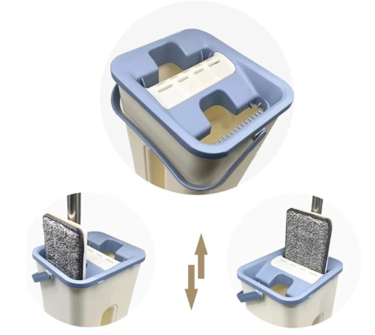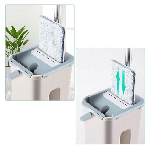 Mopa Fregona de 7L para Limpiar Azulejos y Paredes del Hogar. Mopa Fregona Trapeadora Autoescurrible. Plana con 2 Almohadillas de Microfibra.